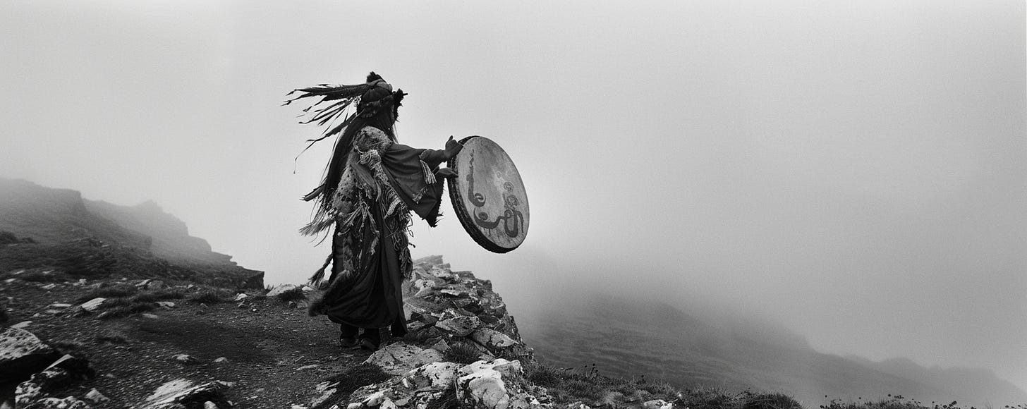 The archetypal ecstatic practitioner is the entranced drumming and dancing shaman. Dancing along the Himalayas, it seems at any moment he step off into the sky. He wears bright, elaborate clothes, and his mannerisms are strange and unsettling. He’s wild and the look in his eyes shows a playfulness and a compassion that is so boundless it almost knocks you back.
